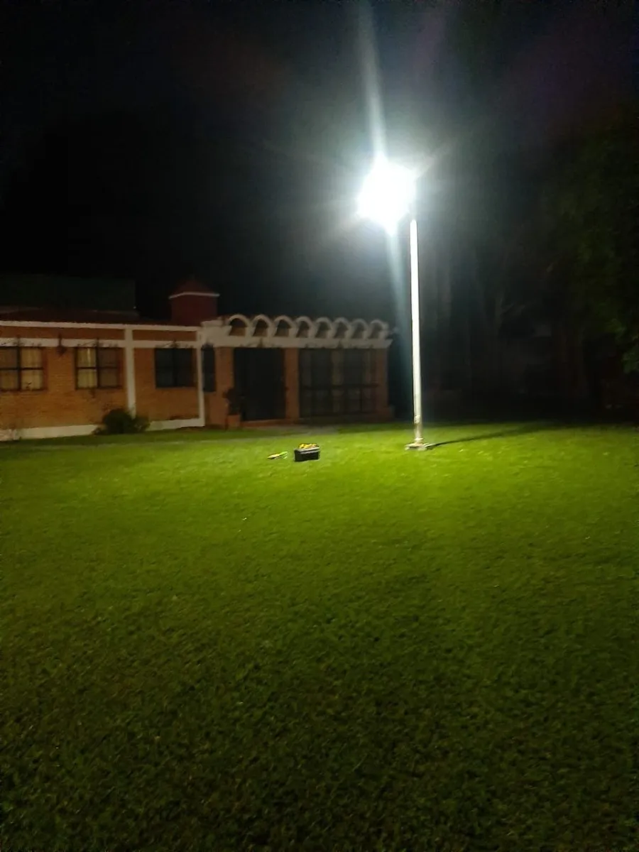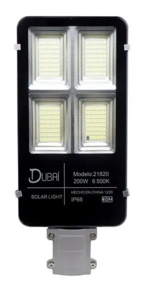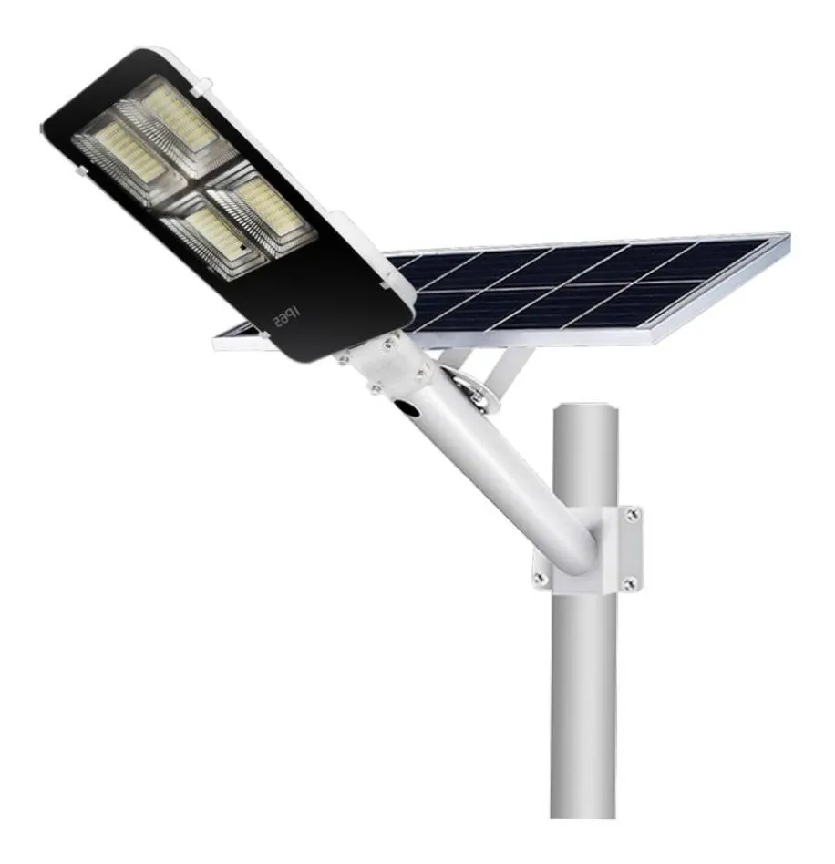 Luminaria con panel solar para alumbrado público, parques, plazas publicas, conjuntos residenciales, centros comerciales, casas campestres, parqueaderos. 100% autónoma, incluye soporte para anclaje o se puede combinar con un mástil, poste o similar (no incluido). Fácil instalación.